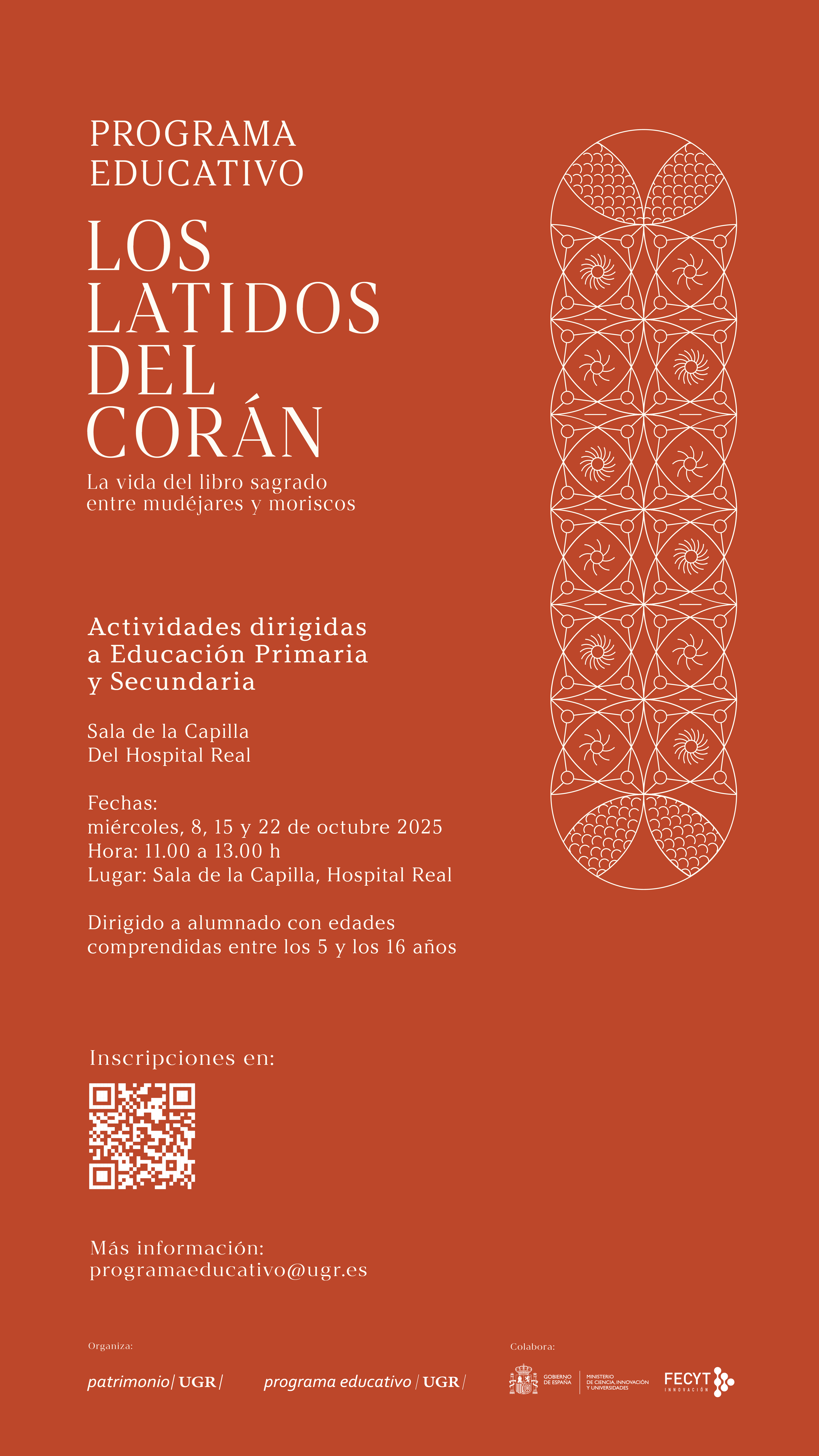 Más información sobre este Programa Educativo en: programaeducativo@ugr.es, con el asunto “VISITA Los latidos del Corán”